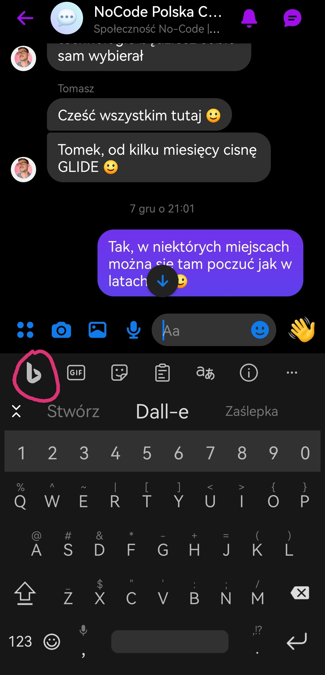 Wejdź do dowolnego komunikatora takiego jak Messenger, Telegram czy WhatsApp kliknij na pole "napisz wiadomość" a następnie z klawiatury SwiftKey kliknij na ikonę Bing, potem wybierz "Chat" i teraz pojawi ci się okienko gdzie możesz prowadzić konwersacje z AI lub generować obrazy.